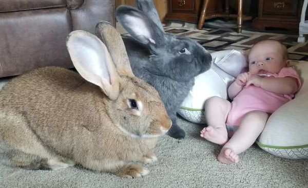 养宠物时,给家里添个新生宝宝总是件令人伤脑筋的事,不少人为了婴儿的安全,不得不忍痛弃养宠物,但对于美国网友简·埃克特(Jenn Eckert)来说,非但没有这样的烦恼,相反,她养的两只巨型兔子,还成了宝贝女儿的“贴身保姆”。
