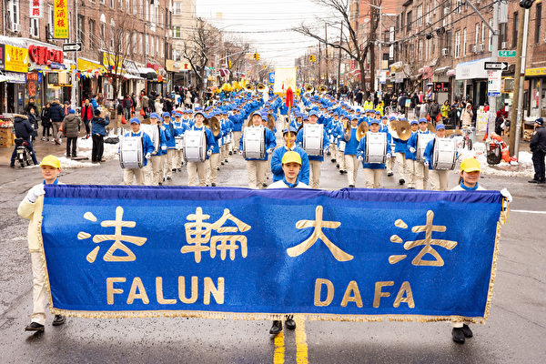 【大纪元2019年03月03日讯】(大纪元记者李桂秀、王黎维纽约报导)“梅花亿点贺新春,人间处处真善忍”,3月2日中午,雪后天晴,纽约部分中西族裔的法轮功学员上千人,在华人社区布碌崙八大道举行游行,送去法轮大法的福音。