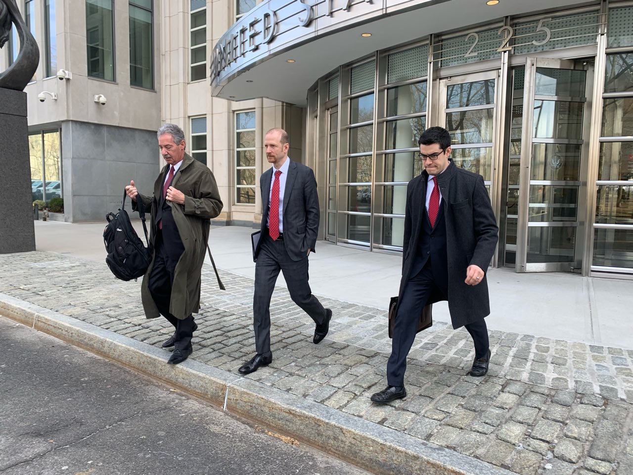 代表控方出庭的助理检察官所罗门(左一)与团队成员离开法庭。(蔡溶/大纪元)
