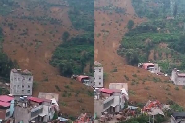 此外,据网传视频显示,滑坡周围有不少居民楼,山体冲断道路。有当地村民拍视频爆料指,一间乡医院被泥石流埋没,可能有人被埋。
