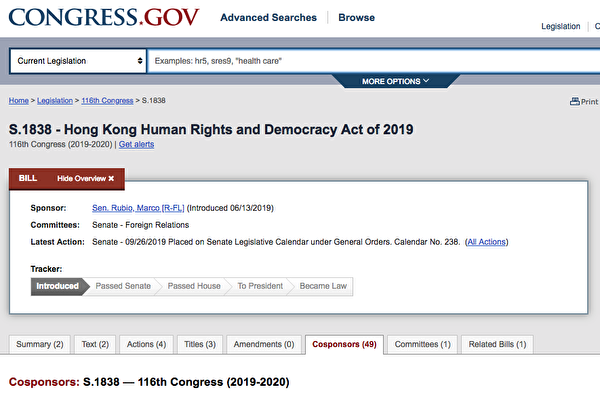 其中,2020年总统民主党竞选人中有沃伦(Elizabeth Warren)和布克尔(Cory Booker)签署《香港人权与民主法案》。