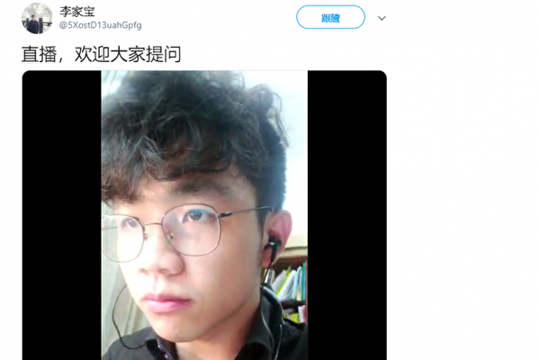在这篇文章中,李家宝介绍了自己的一些情况。在推特直播批评中共独裁后,他的QQ、微信、淘宝、支付宝等大陆通讯软件都被注销了,“等于是在中国网络上不存在”。