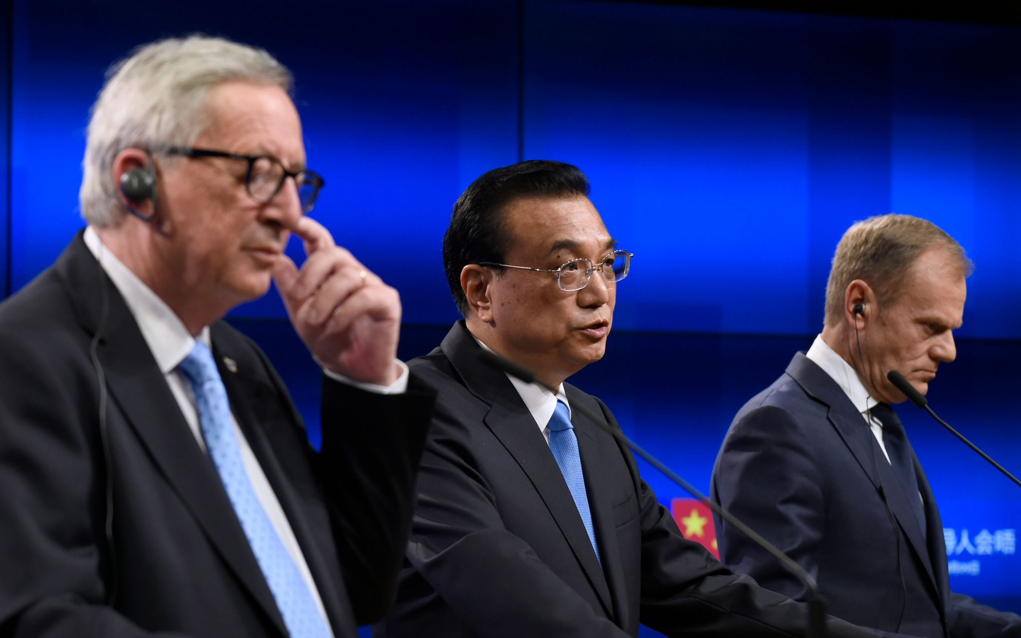 不被外界看好的欧中峰会4月9日结束了,欧洲理事会主席图斯克(Donald Tusk)、欧盟委员会主席容克(Jean-Claude Juncker)与中共总理李克强共同发表了联合声明。