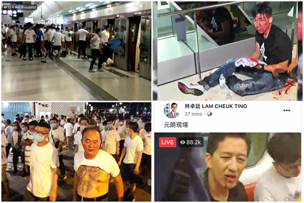 在警方开枪的同时,元朗地区有100多名身穿白衣、多数戴口罩的壮汉,在地铁站附近手持棍棒追打路人。