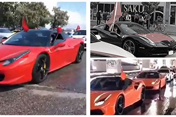不仅在澳洲,加拿大和欧洲,也有不少亲共人士举行活动。一段广为流传的视频显示,一列华丽跑车发动引擎,车窗挂出了中共血旗。一位推友形容,这是“史上最烂的《速度与激情》(Fast & Furious)电影”。