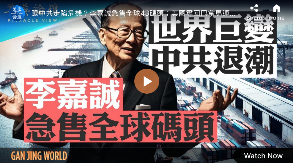 【大紀元2025年03月08日訊】川普(特朗普)總統上台之後,說了幾個讓全世界都震驚的計劃,其中之一就是要奪回巴拿馬運河。這個計劃不但遭到巴拿馬政府的反對,也引發了很多左派的大量批評。然而就在本週,控制了巴拿馬運河兩端港口的香港企業長江和記宣布,將港口權益出讓給一家美國資本主導的企業。不僅如此,同時退出的還包括該公司在全球的,二十多個國家的四十多個港口和碼頭的經營權。