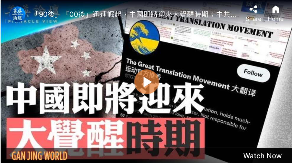 【大纪元2024年09月19日讯】最近两年,在中国有两场抗议运动引起了非常大的关注,都与中国年轻人有关。一个是“大翻译运动”,另一个是“白纸运动”。对于追求自由的人来说,这两场运动让大家看到了中国的未来,也宣告了中共几十年来针对年轻人洗脑教育的大失败。