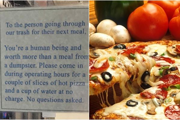 目睹街友翻垃圾桶 披萨店一纸字条抢救尊严