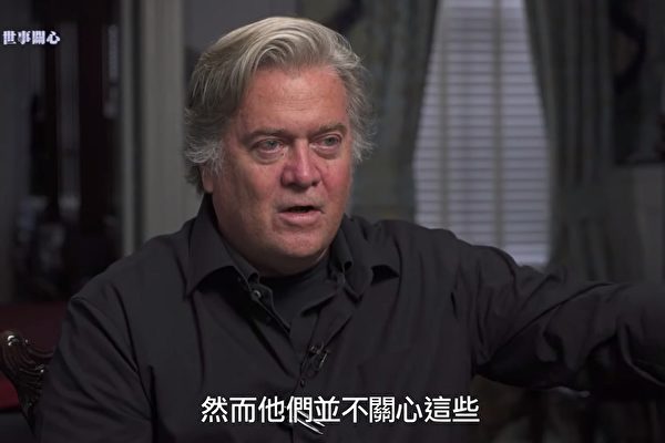 班农:我知道的是,只要街上还有抗议者,他们就不准备后退,就不会走到中共那边。 我认为应采取一些行动,因为这些香港年轻人英雄般的壮举,坦率地讲令人震撼,而且会越来越激烈。