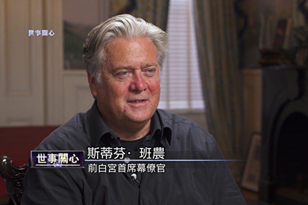 新唐人《世事关心》节目记者萧茗采访了白宫前首席战略顾问史蒂夫‧班农先生。(新唐人)
