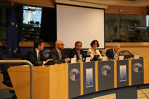 此次研讨会由欧洲议会议员米歇尔(Louis Michel)发起,会议发言者包括几位欧洲议会议员、欧洲经济与社会事务委员会第三十任主席,以及神韵演出在西班牙和比利时的主办方代表等。