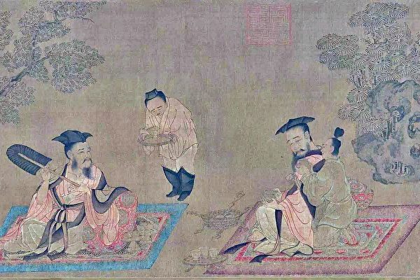 中国古人对坐姿很有讲究,因为它也是礼仪的一个方面。古代人们的坐姿主要有三种:“趺(音“副”)坐”,即双足交迭,盘腿而坐,类似佛教中修禅者,所以又称“跏趺坐”;“箕踞”,即两腿前伸,全身像簸箕形状;“跽(音“计”),即跪坐,臀部压在后曲的小腿和脚上。在没有宾客时,坐姿可以随便一些,好像上面的前二种,但是如果和尊者、长者、朋友交谈,或在议事、宴会和招待客人时,就要采用礼貌的姿式──“跽”了。