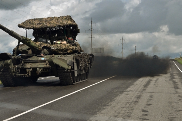 2024年8月8日,一辆俄罗斯T-72主战坦克在苏扎镇外行驶。(ANATOLIY ZHDANOV/Kommersant Photo/AFP via Getty Images)