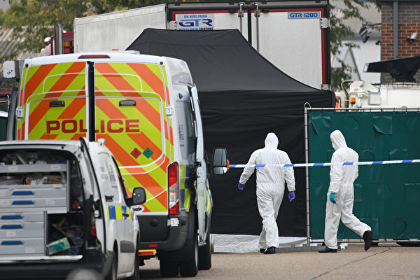 【大纪元2019年10月23日讯】(大纪元记者李言综合报导)英国警方于周三(10月23日)在伦敦东部埃塞克斯(Essex)的一辆半卡车后部发现39具尸体,被疑是通过“非常规”渠道来到英国的偷渡客。车上1名涉嫌谋杀的25岁北爱尔兰司机已被逮捕。英国首相约翰逊随后发表推文说,对此事感到震惊。