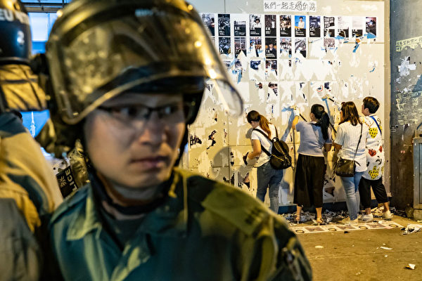 警察保护亲共人士毁掉连侬墙。(Anthony Kwan/Getty Images)