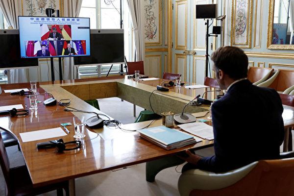 针对紧张的乌克兰局势,同一天(8日)法国总统马克龙(Emmanuel Macron)、德国总理肖尔茨(Olaf Scholz)和中共总书记习近平举行视频峰会。会上,习近平并未指责美国及北约国家挤压俄罗斯战略空间,只是再次重申反对西方对俄罗斯实施制裁。他说,制裁对全球的金融、能源、供应链等都造成冲击,对各方都不利,应推动俄乌双方继续谈判。
