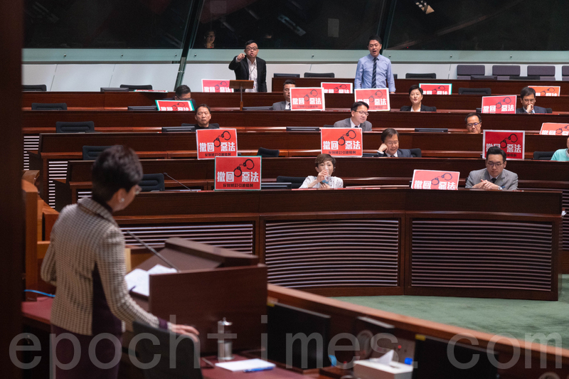 特首林郑月娥出席立法会“短问短答”环节,多名民主派议员聚焦《逃犯(修订)条例草案》。(李逸/大纪元)