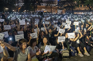 图为6月14日晚6000香港母亲在中环遮打花园集会抗议送中条例。(Carl Court/Getty Images)