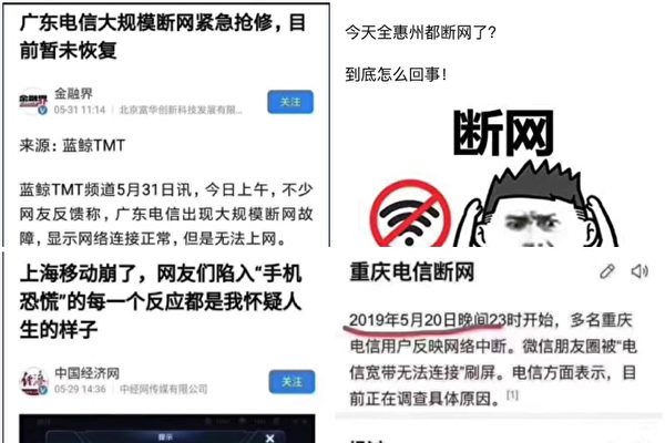 独立学者“冷山”在其自媒体推特上总结说:“仅有防火墙还不够,中国各地开始演习大面积断网了,应对贸易战后吃草民众的集结!”