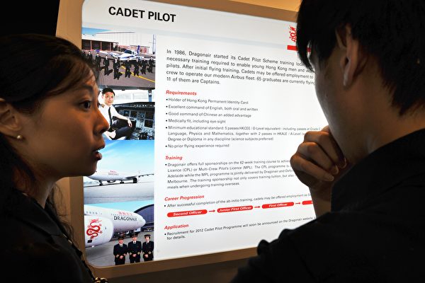 图为2011年8月26日,香港国际机场举行的飞行员招聘会现场,与本文无关。(LAURENT FIEVET/AFP/Getty Images)