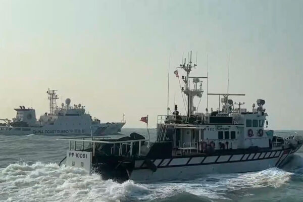 中华民国海洋委员会海巡署金马澎分署表示,2025年1月21日侦获4艘中共海警船陆续出现在金门南面限制水域,立即部署4艘巡防艇趋前、对应阻止。(中华民国海洋委员会海巡署金马澎分署提供)