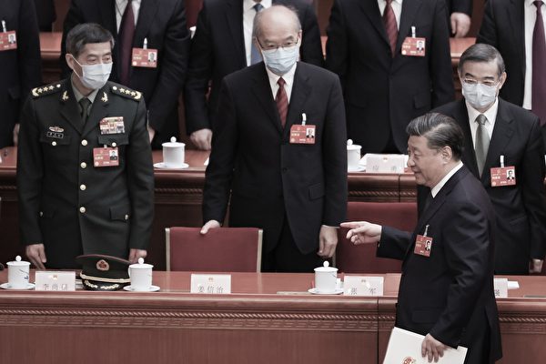 以中共火箭军军头为首的一个小集团对习近平阳奉阴违,引爆一场政治大清洗。近期国防部长李尚福(左一)的失踪引发全球关注。图为2023年3月11日中共人大会议开幕。(Lintao Zhang/Getty Images)