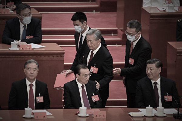 而最具象征意义的一幕就是在二十大闭幕式上胡锦涛被架离会场。