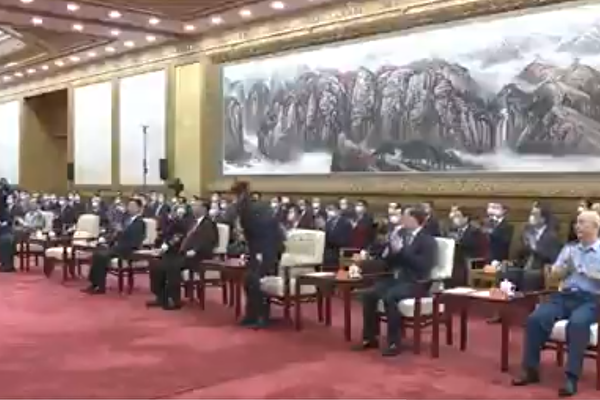 接着,刘鹤宣读李克强的头衔和姓名后,没有任何停顿(不给李克强时间起身致意,当时会场已经响起掌声),接着立刻读韩正的头衔和姓名。这令刚刚起身一半的李克强非常被动,与会者也不清楚是否该继续鼓掌。李克强刚起身时,除习近平外,全场都准备鼓掌,坐在他旁边的丁薛祥也已经把双手和在一起(做出鼓掌的动作)。