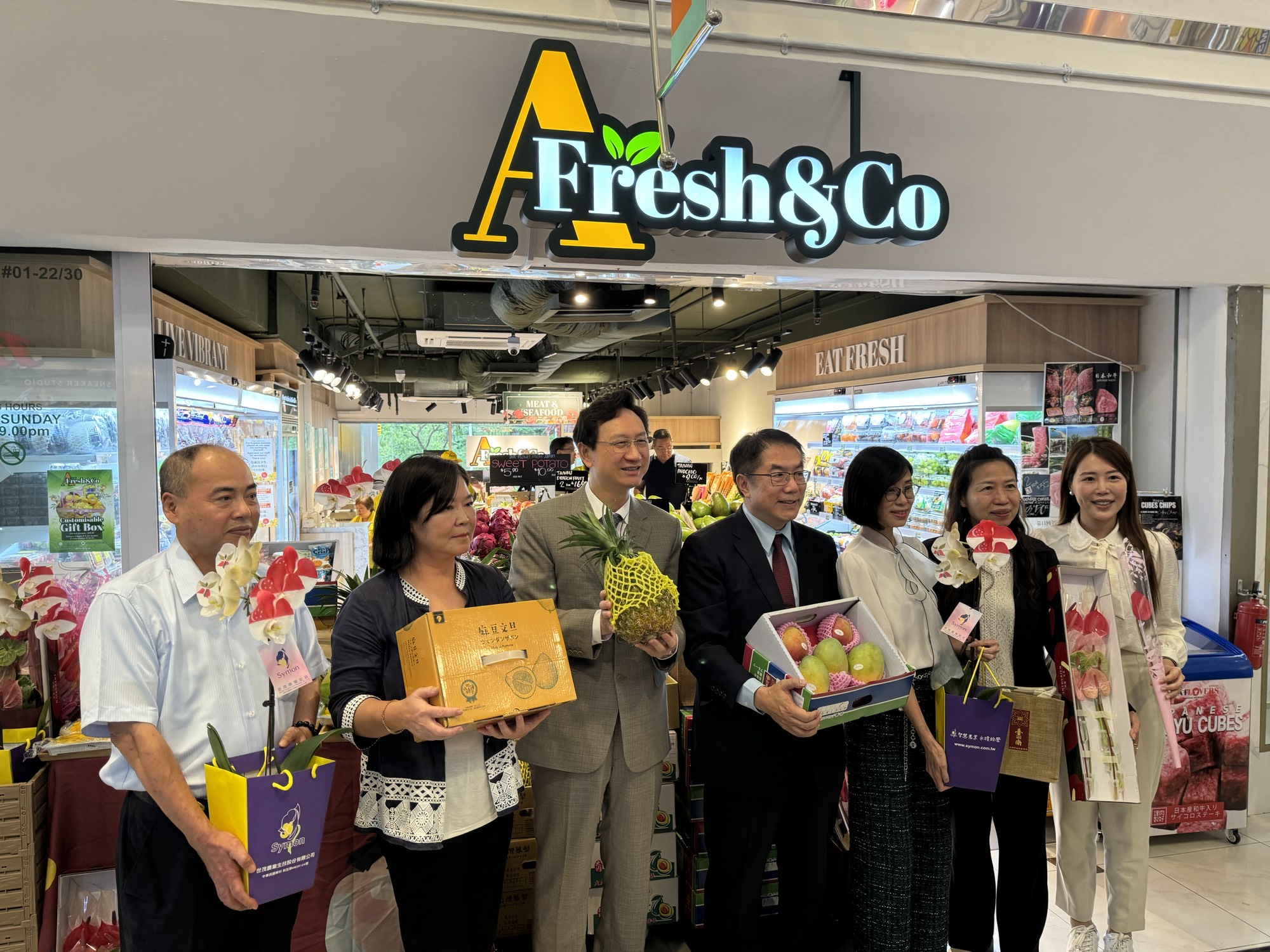 【大纪元2024年08月16日讯】(大纪元记者陈欣莲报导)台南芒果、西瓜凤梨、酪梨、红龙果等台湾优质水果来到了新加坡汤申大厦。 8月16日,台南市政府与本地YOSHIMURA集团,在汤申大厦购物中心的AFRESH & CO超市举办台南芒果品尝会。台南市长黄伟哲亲自飞抵狮城,在品尝会上推荐“彩虹芒果宝盒”,和台南的当季水果。驻新加坡的台北代表童振源博士也莅临现场支持。