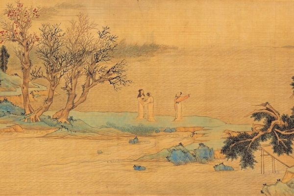 明 崔子忠画《苏轼留带图》(局部),台北国立故宫博物院藏。(公有领域)