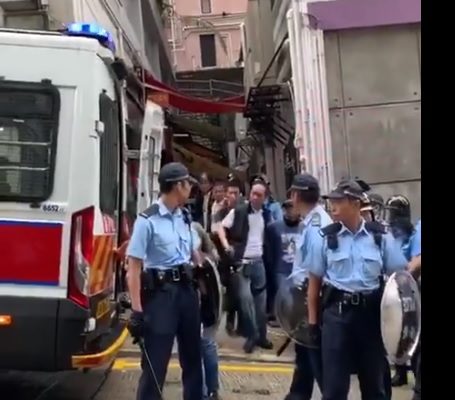 8月31日下午近3时,港警突然袭击了西营盘第三街近薄扶林道的“国难五金”,警员声称要检查店铺物品,又要求登记多名店员的身份证,其后再有大批警员到场增援,人数逾50人,其中约20名警员全副武装,手持持圆盾、警棍。
