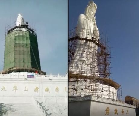 长期关注中国人权问题的《寒冬》杂志8日刊文,辽宁省凌海市九华山风景区虽贵为国家4A级景区,但仍逃不过被整肃的命运。此景区内普贤菩萨、观世音菩萨两尊露天塑像在中共整治宗教造像运动中,均遭封盖或“整容”,甚至已经面目全非。