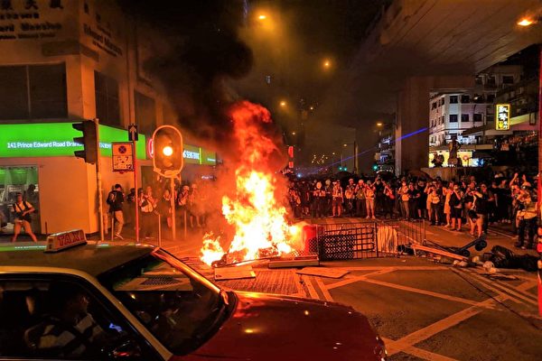 这时太子站现场也来了很多媒体记者,气氛也一度紧张起来。有抗争者再次聚集马路,铺设大量纸皮,有人点火,过程颇长,警察有足够时间去驱散阻止,不过,警察没有行动。