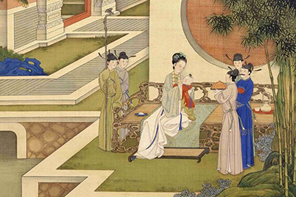 成语“车水马龙”就是从马太后此诏书中简化来的。图为清焦秉贞《历代贤后故事图册》之《约束外家》。(公有领域)