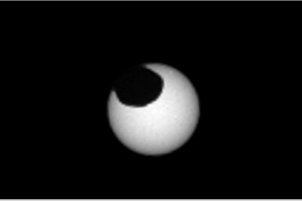 3月26日,当火卫一直接在太阳面前经过时,好奇号再次拍摄下日食景象。