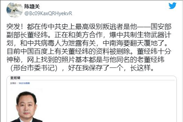 当然,无论董经纬是哪一派的人,抑或出逃的其实另有其人,不能说明叛逃者本身代表正义,就像当年重庆公安局长王立军手握中共黑料夜逃美领馆一样,其同样是参与迫害人权的刽子手。如果没有强有力的揭露中共政权的惊天猛料,叛逃者显然无法抹去曾经在中共政法系统多年犯下的罪行。