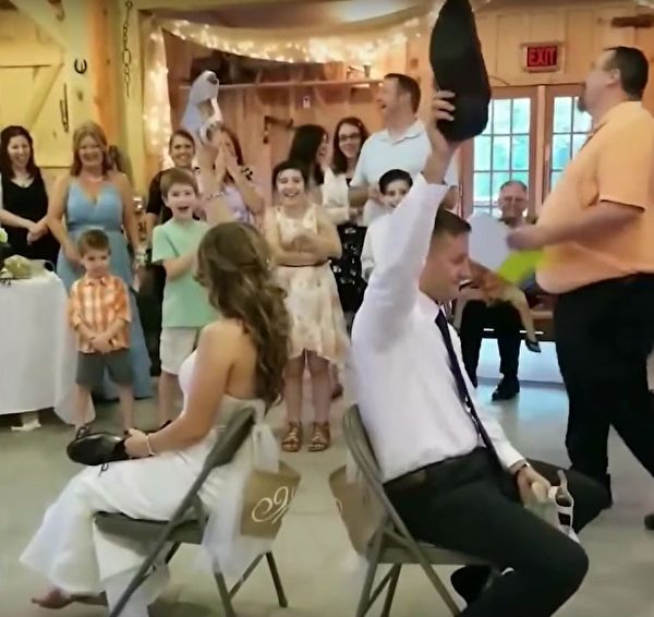 美国的婚礼习俗中有个热门的游戏桥段叫“鞋子游戏”(The Shoe Game):新郎新娘现场向大家坦诚公开彼此的默契程度,而男女双方的回答,总会引起一波波高潮迭起的笑料!下面这段影片就是这一游戏的精彩展现。