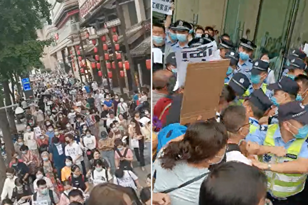 【大纪元2021年09月14日讯】(大纪元记者熊斌采访报导)中国房地产龙头企业恒大集团旗下的理财产品爆雷。9月13日,四川成都至少数百人游行到恒大公司,举牌拉横幅高喊“恒大还钱”的口号,遭到现场警察抢夺横幅,多人被抓。