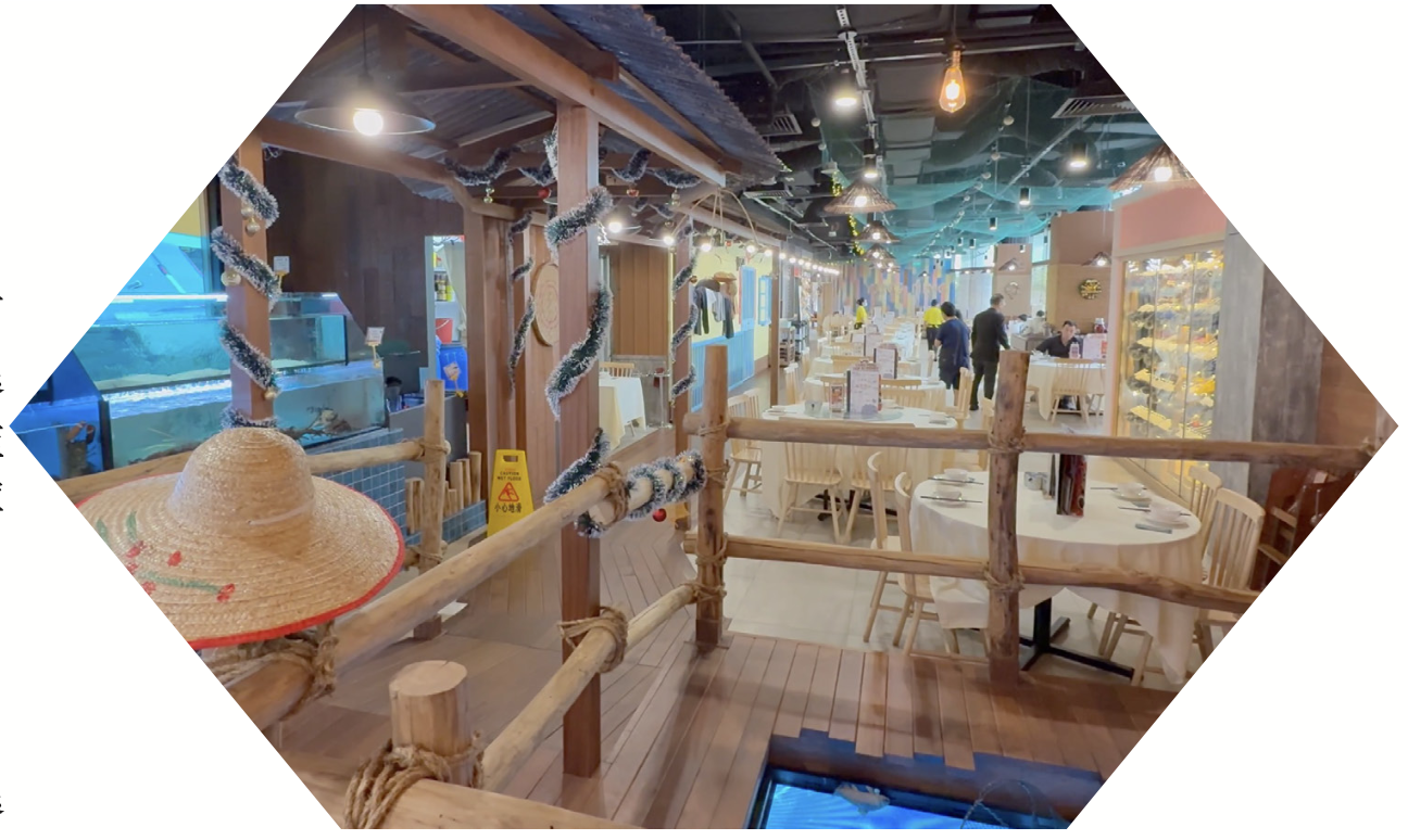 走进位于怡丰城的“扬名海鲜港”,仿佛置身都市中的一座温暖小渔港。餐厅空间别出心裁,由老板江霖凡亲自设计打造——来自马来西亚槟城的他,将熟悉的奎笼文化融入其中:木质结构、渔具装饰、生猛海鲜,处处流露出生活的质感与海的气息。