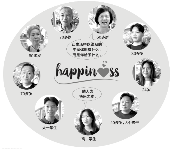 男(70多岁):“幸福的定义,没有什么定义,只是说做东西要做得对,对得起自己,对得起整个社会,对方快乐,你也会快乐。现在人看物质享受比较重要,真正是心灵很重要,不是说你驾大车就很幸福,你要有幸福感,帮忙人家,你会有幸福感。”