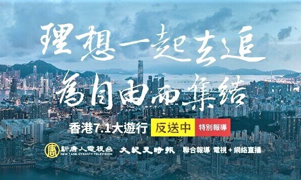 香港反送中, 七一, 新唐人,全球卫星直播 ,多媒体联合报导