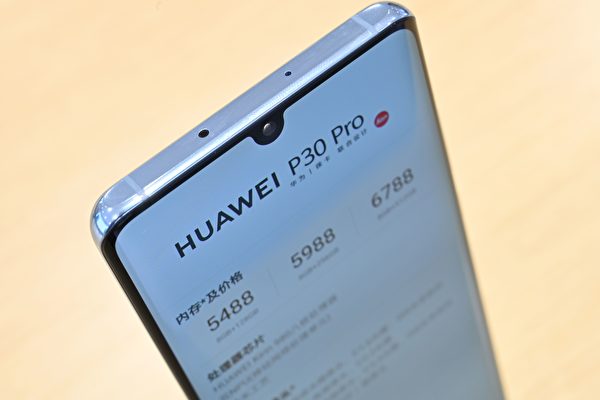 华为最新款手机P30 Pro中,组件列表包括:正面和背面的康宁(Corning)玻璃、美光(Micron)的闪存,以及允许手机连接到3G和LTE网络的网络组件等。(HECTOR RETAMAL/AFP/Getty Images)