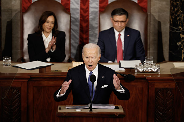 3月7日晚,拜登在美国国会发表国情咨文,他说,许多人声称“中国(中共)正在崛起,美国正在衰落,但是他们错了……美国正在崛起。我们拥有世界上最好的经济。”