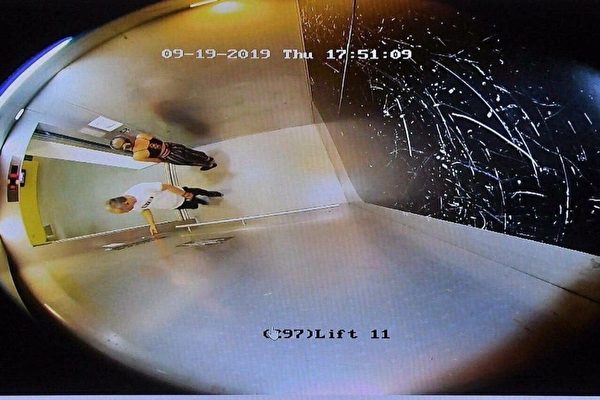有人在连登社区公布这名神秘白衣男子进到电梯来的画面。但之后仍是突然中断。(连登)