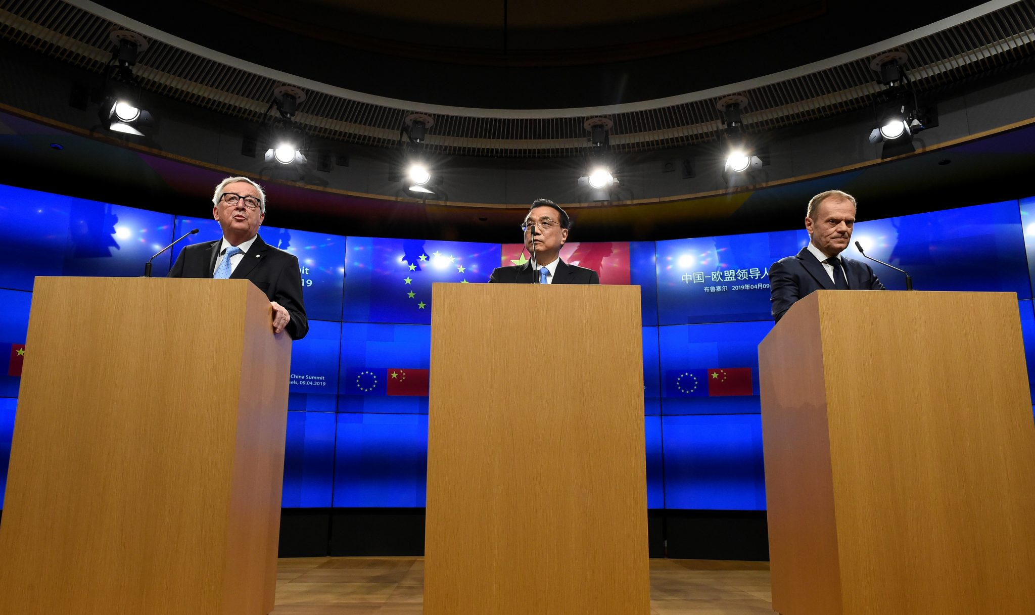 欧洲理事会主席唐纳德·图斯克(Donald Tusk)、欧盟委员会主席容克和中共国务院总理李克强周二在会面后,共同发布了欧中峰会联合声明。