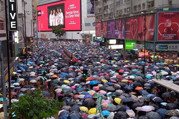 意思是,香港三次超过百万人的大型集会游行以及各种遍地开花式的小型示威活动“反送中”,代表了所有香港人“千人一口”地反共的强大呼声,人心之齐举世罕见,集结“仁义礼智信”(“和理非”)于所有香港人,而且总结了当年六四事件的经验教训,不上中共的当,逐个击破了共产党历次运动中从内部搞破坏的手段,致使中共想通过制造混乱进行镇压的企图落空。