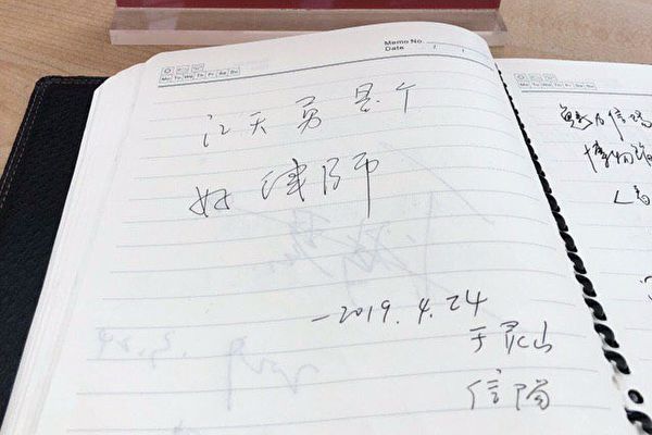 五一长假有游客在旅游时给江天勇留言“江天勇是个好律师”,并署名和日期。江天勇的妻子金变玲表示,这个行动不错,值得推广,以后大家到各地旅行,可以到处为王全璋、余文生、胡石根、周锐锋、戈觉平等留言。