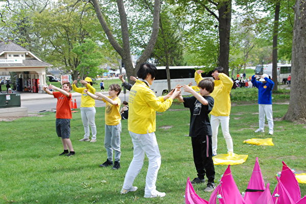 来自中国东北的一家三口住在温莎市,尼亚加拉瀑布是他们自驾旅行的第一站。当看到法轮功炼功场面时,他们既惊讶,又兴奋,赶快拍照,录像。