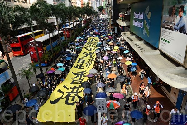 5日,港人再次在多地举行集会和游行,包括许多中年人、银发族也走上街头抗议恶法。