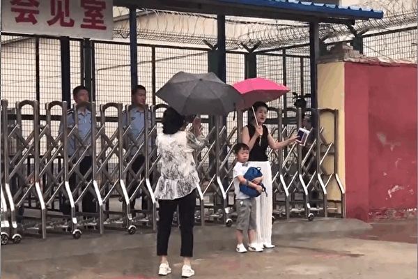 6月28日下午,李文足经历近四年的艰苦抗争,终于和儿子以及王全璋的姐姐会见到了丈夫。(视频截图)